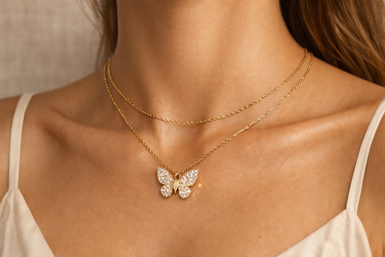 Elegant Butterfly Pendant Necklace in Gold and Silver