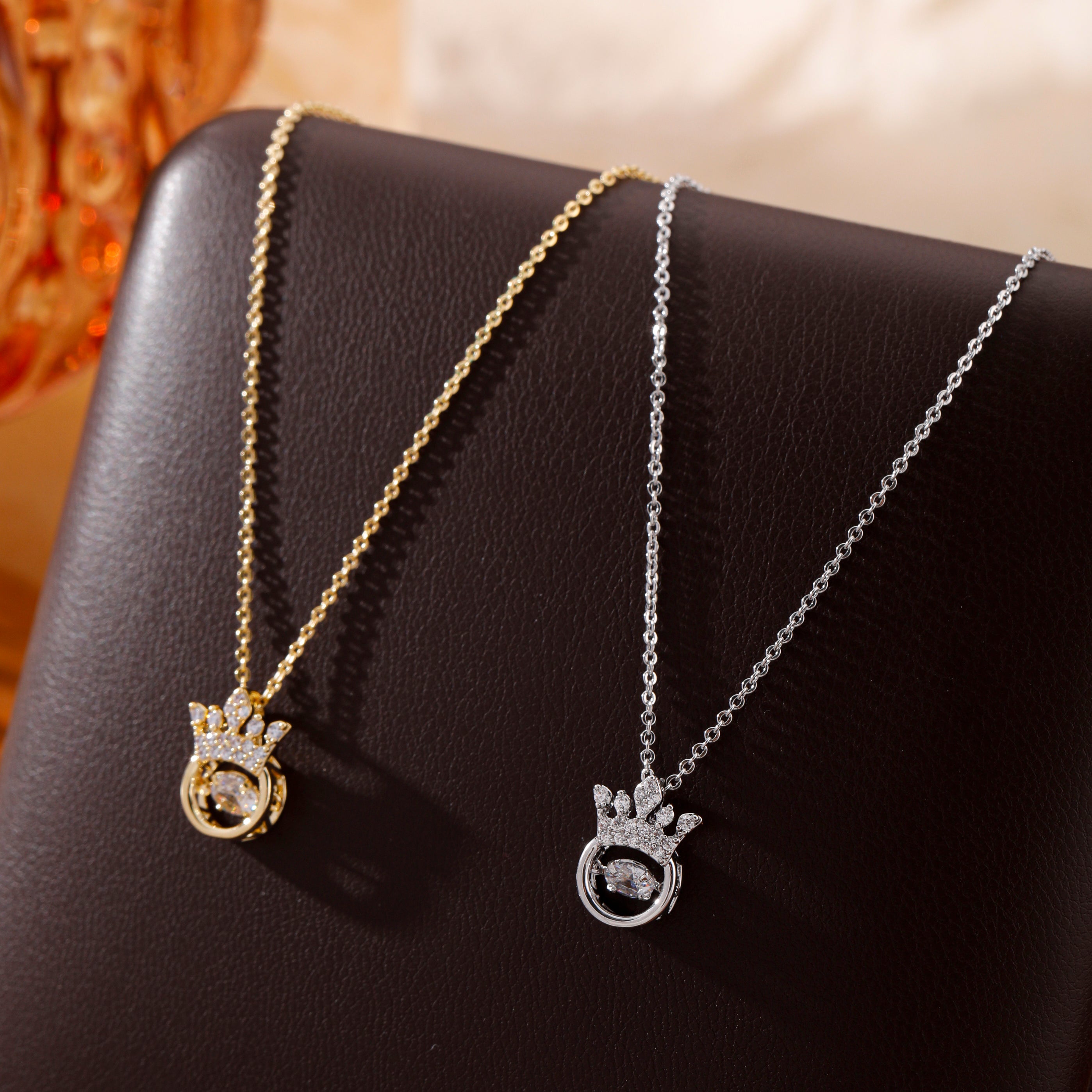 Elegant Crown Pendant Necklace with Crystal Accents