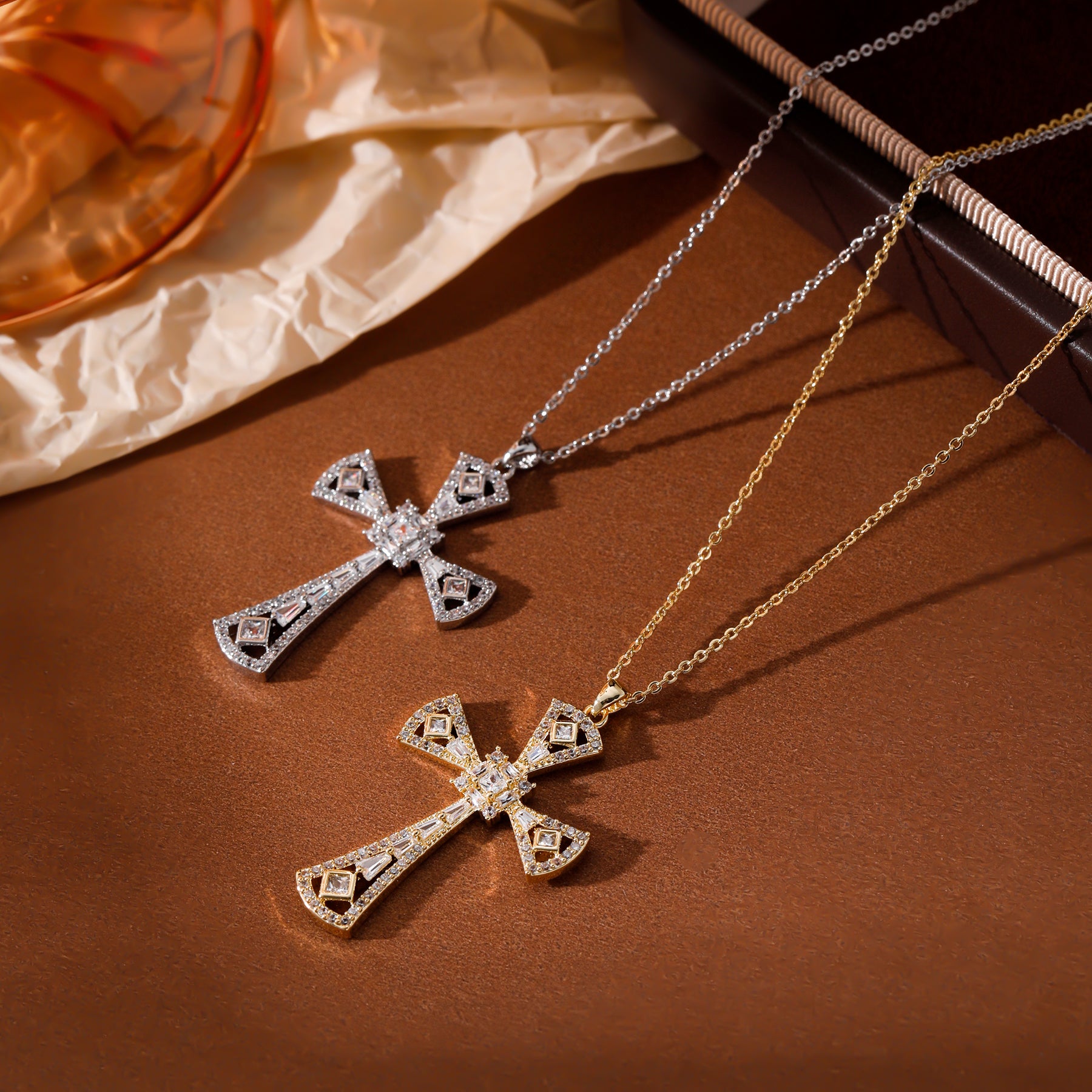 Elegant Gold Cross Pendant Necklace with Cubic Zirconia