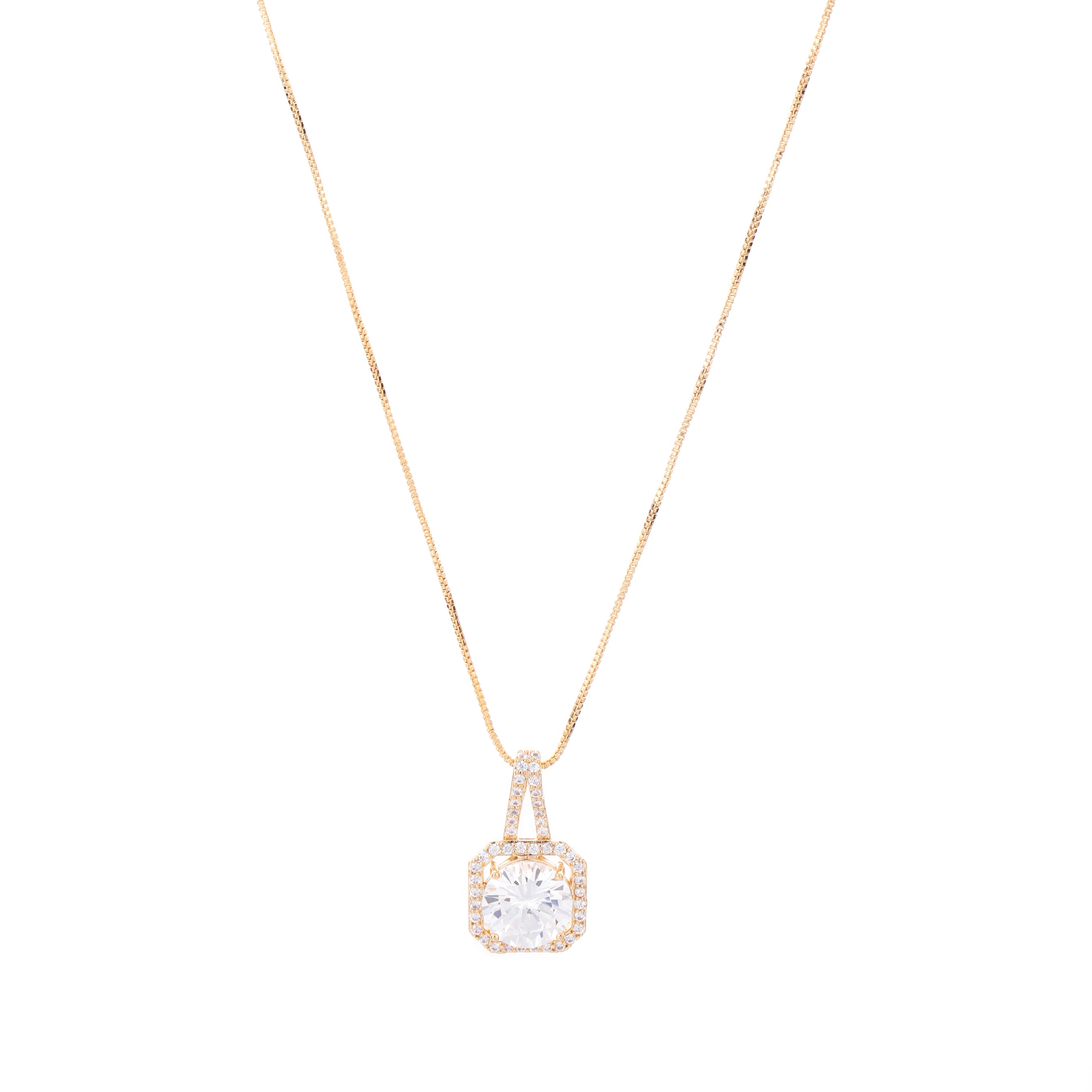 A stunning silver necklace featuring a radiant round-cut crystal pendant surrounded by a halo of smaller crystals. Perfect for adding a touch of sparkle to any outfit.