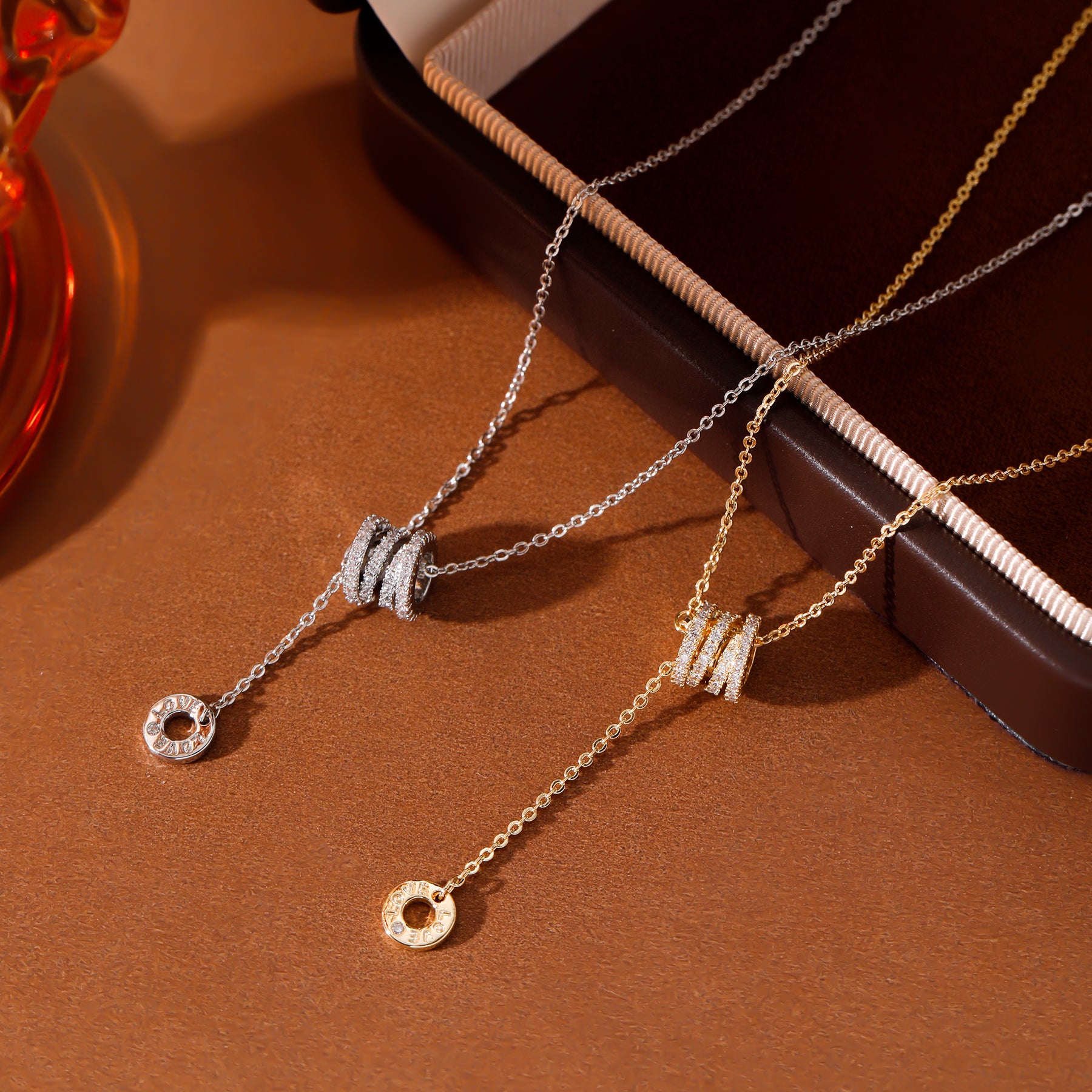 Delicate silver necklace featuring a unique pendant design with sparkling crystal accents. Perfect for adding a touch of sophistication to any outfit.