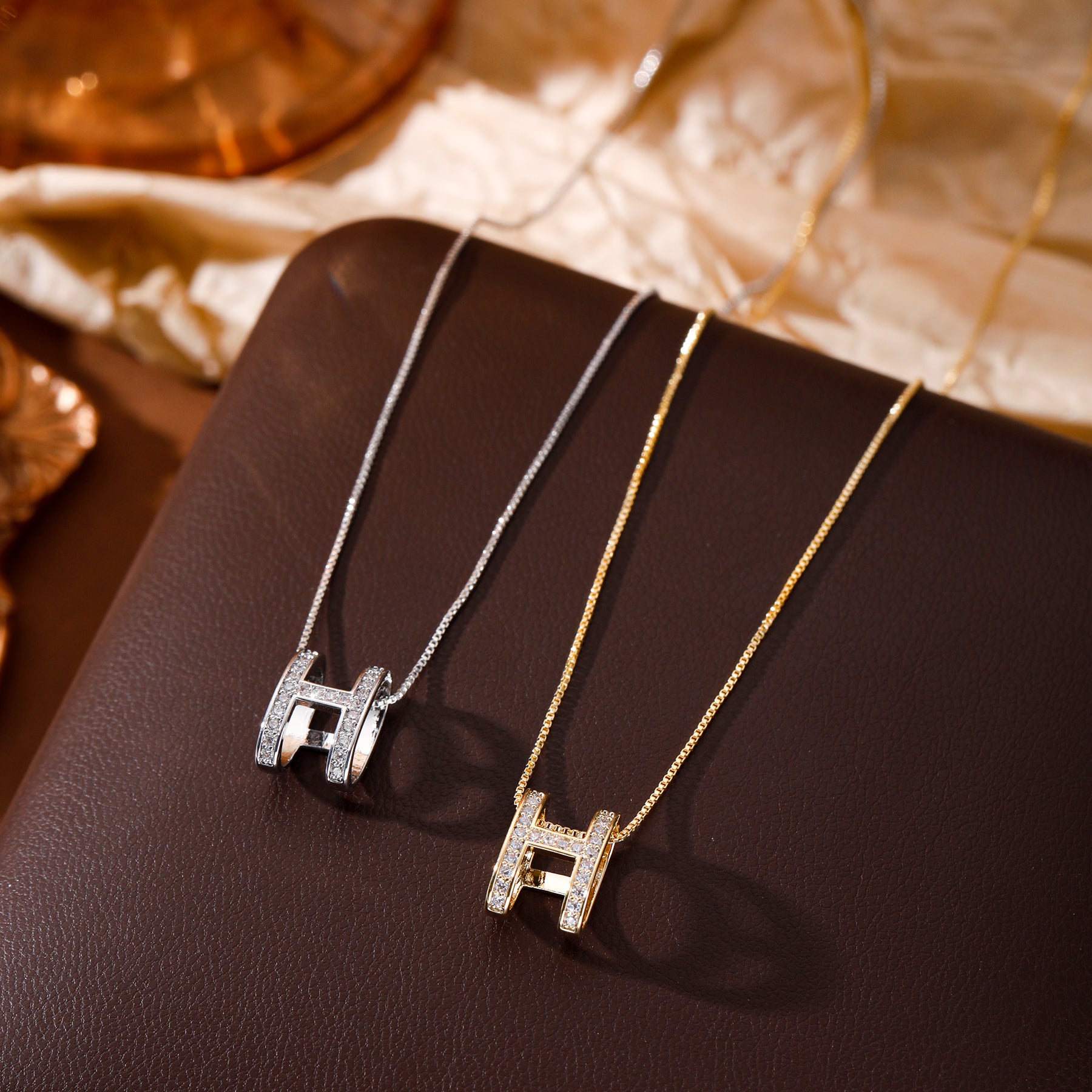 Elegant gold necklace featuring a sparkling crystal-encrusted initial H pendant. Perfect for personalized everyday wear or gifting.